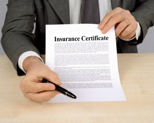 A certificate of insurance is a document showing that you have business insurance coverage. This is primarily used when hiring third party groups to work for you. They should ask for a certificate of insurance prior to starting a job to ensure they have the correct coverages in case something went wrong.
